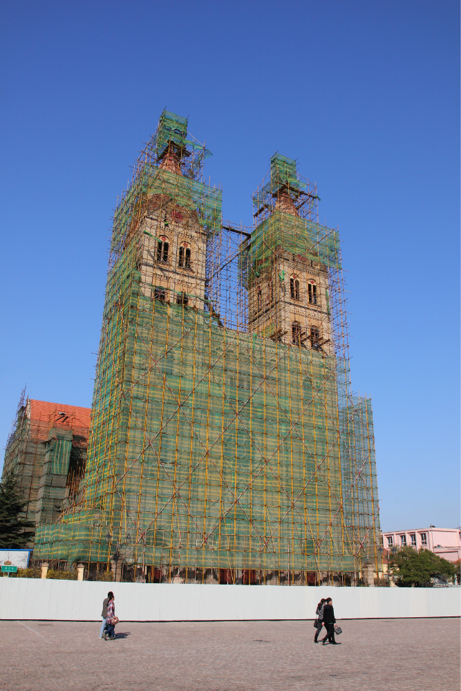 青岛著名的圣米厄尔大教堂。。。在修缮,不巧啦