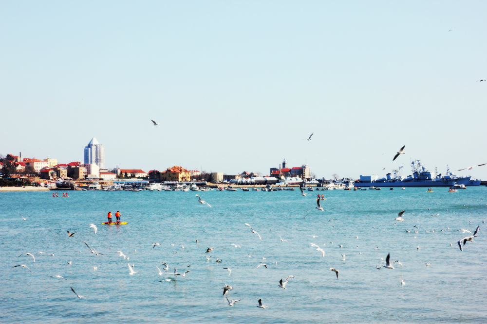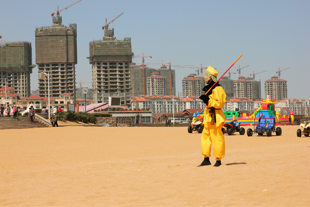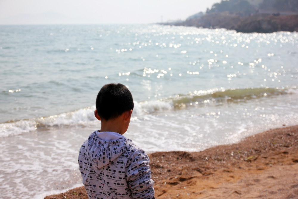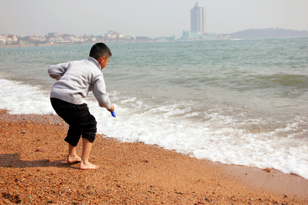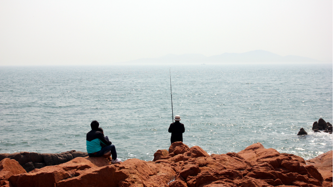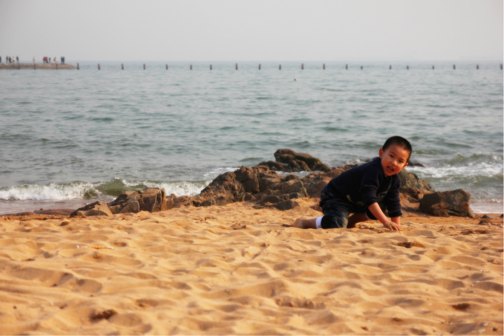 下面一组照片都是坐在沙滩上拍的(八大关附近的海域吧)