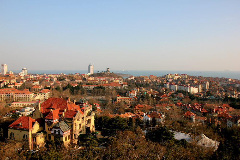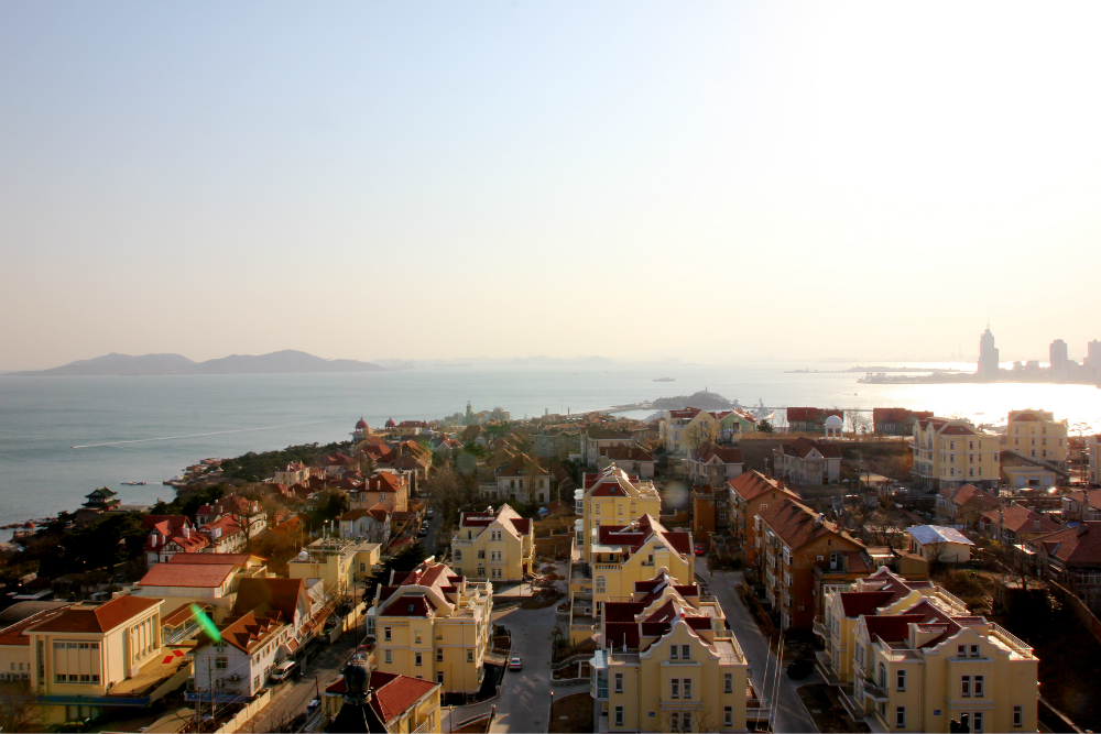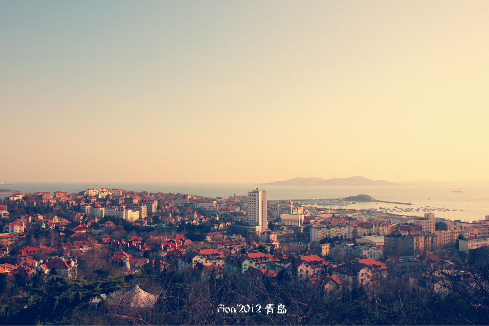 信号山之上俯瞰青岛。远处绿色的小亭子是小鱼山~小鱼山上看青岛也很漂亮