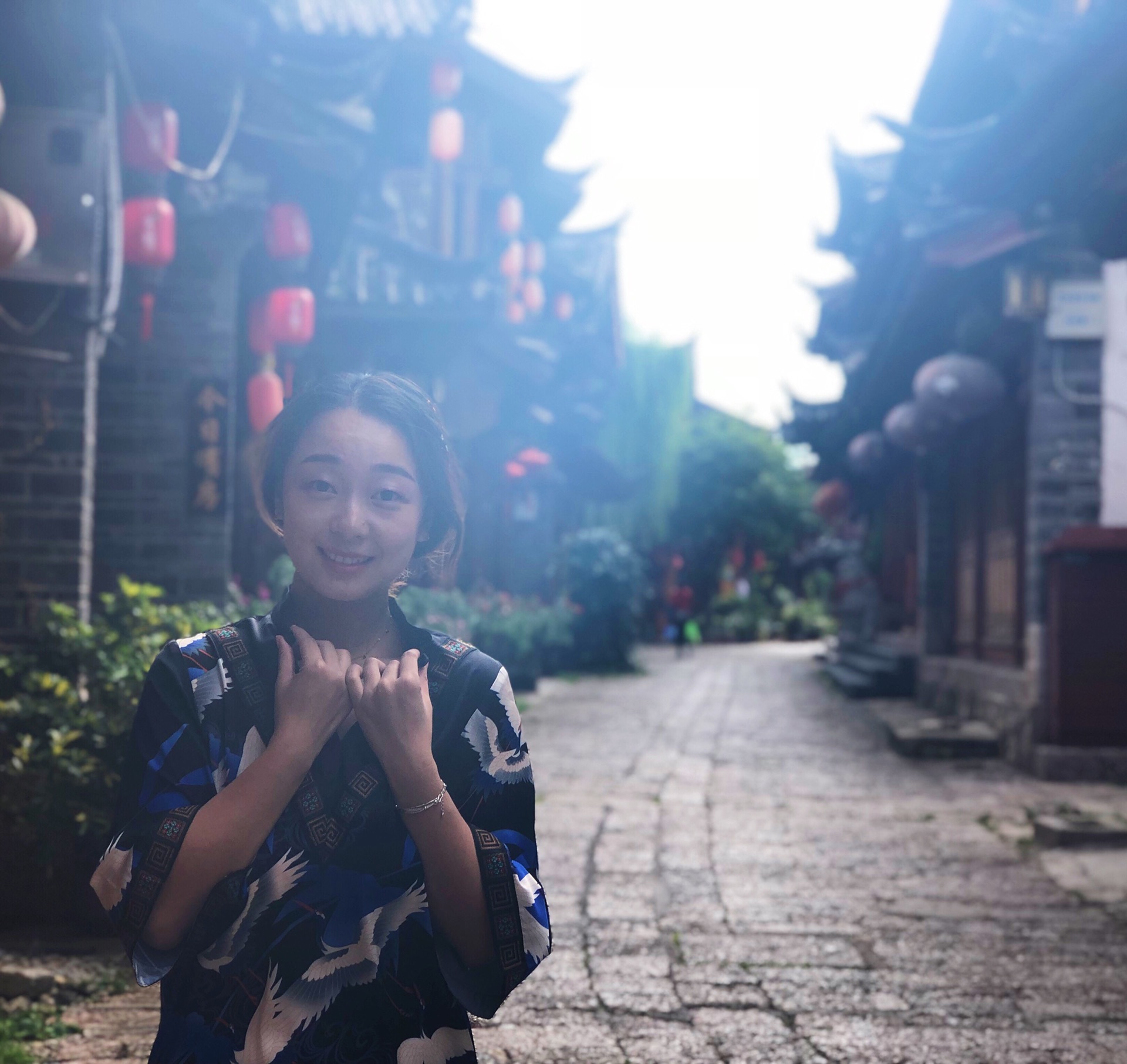 到达喜洲古镇,车停在了停车场,选择以当地小三轮的形式环游小镇,由于刚刚不算美好的经历,一开始拍照两个人都僵到不行。