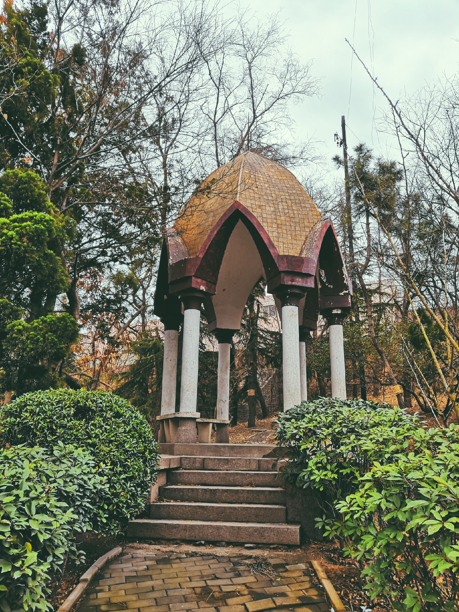 观象山上的小亭子,观象山的正前方就是青医附院↑