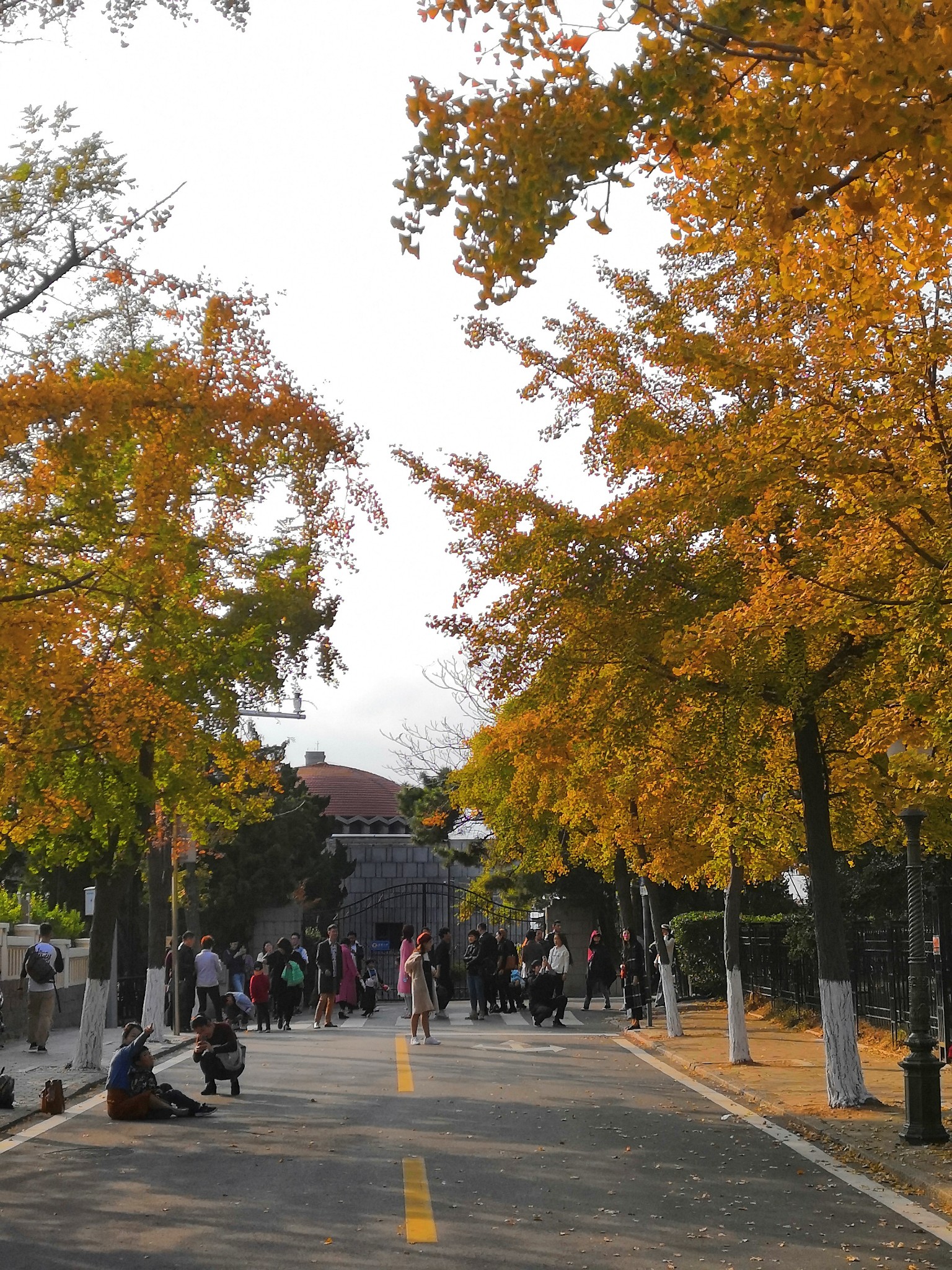 每年到了赏秋叶的季节,八大关人流如织,而且大部分游客都在寻找这条银杏大道,特别是周末的时候那必须是人山人海啊,所以建议大家尽量选择工作日游览或者早上早点过来,早上来的话,树叶已经落了一夜,无人踩踏,景色更加漂亮。