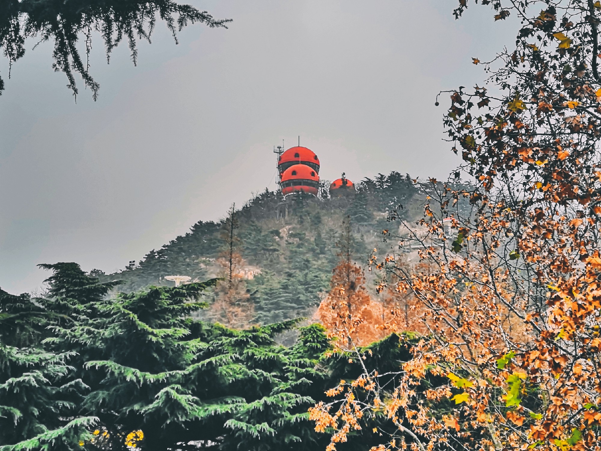 在江苏路上,抬眼一望就能看到信号山上的三个大红蘑菇↑
