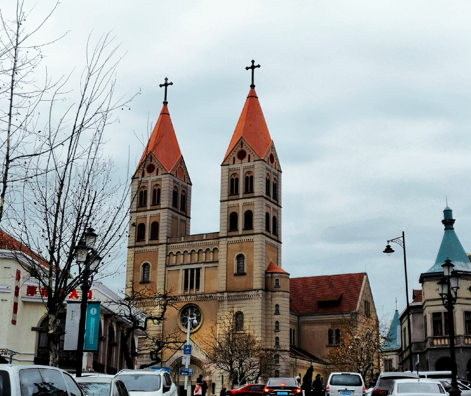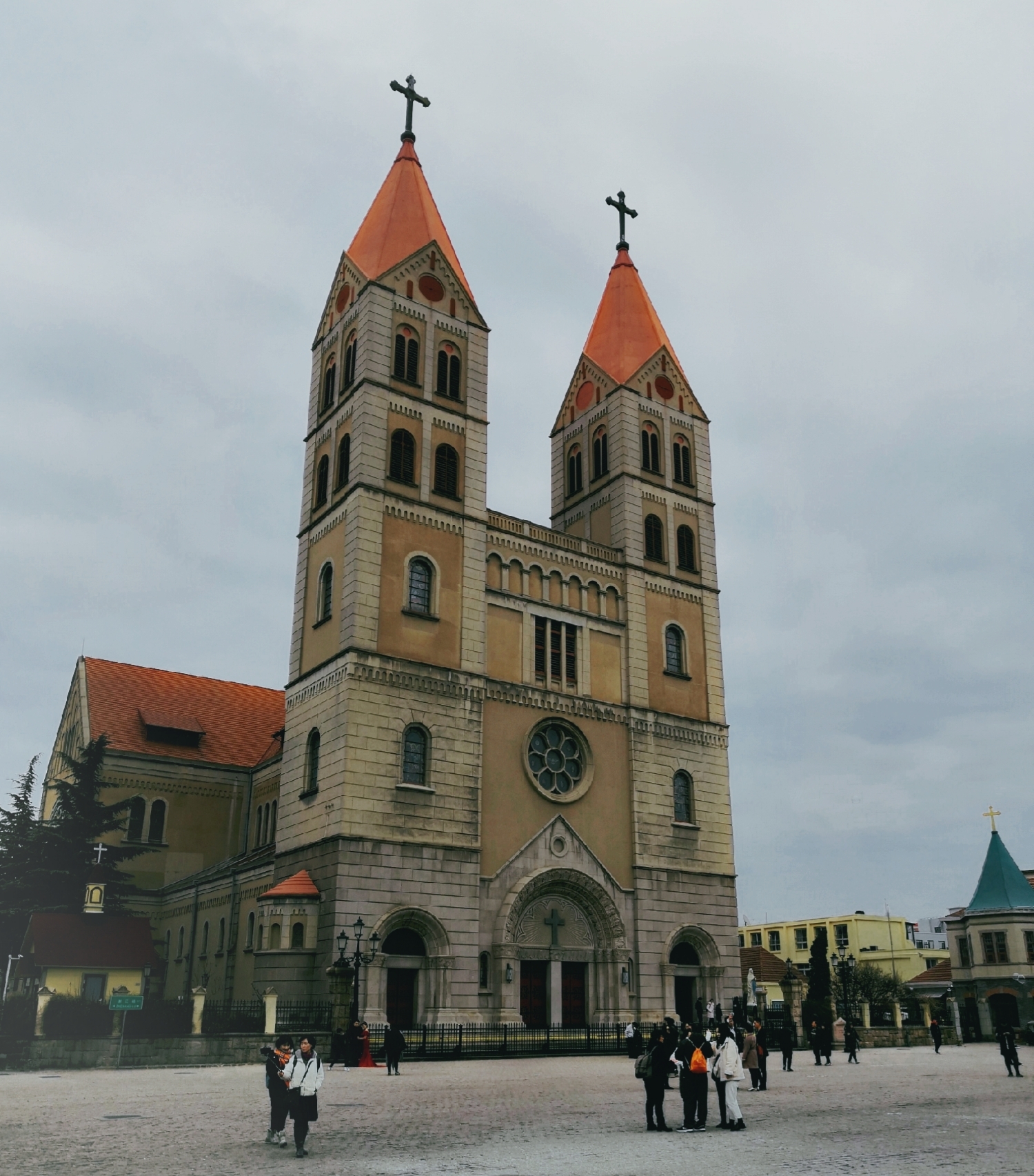 天主教堂始建于1932年,于1934年竣工。塔身高56米,是建国前山东省最高的建筑。是中国唯一的祝圣教堂。祝圣教堂是向耶稣以及天主教的其他圣人,祷告的教堂。