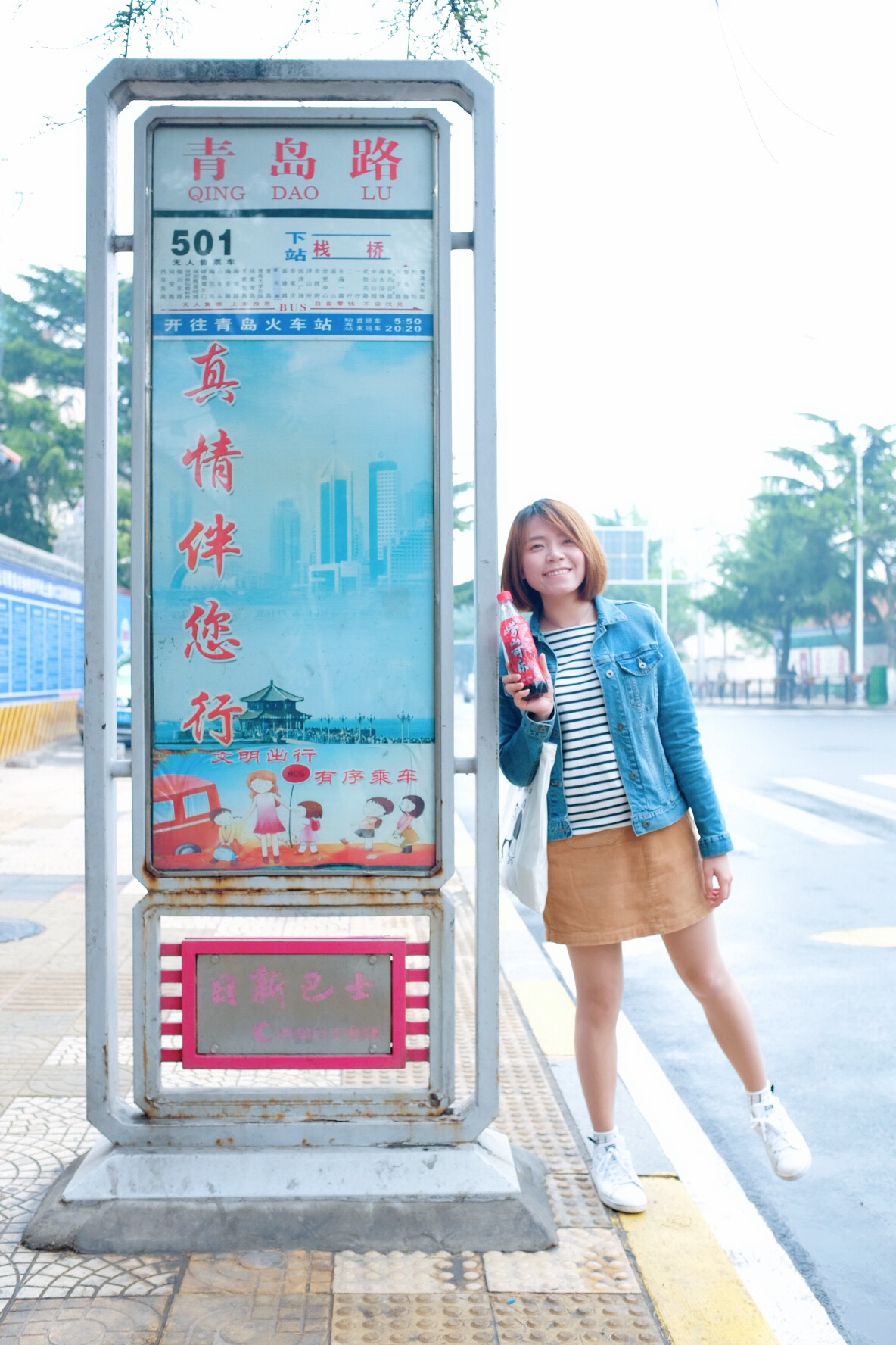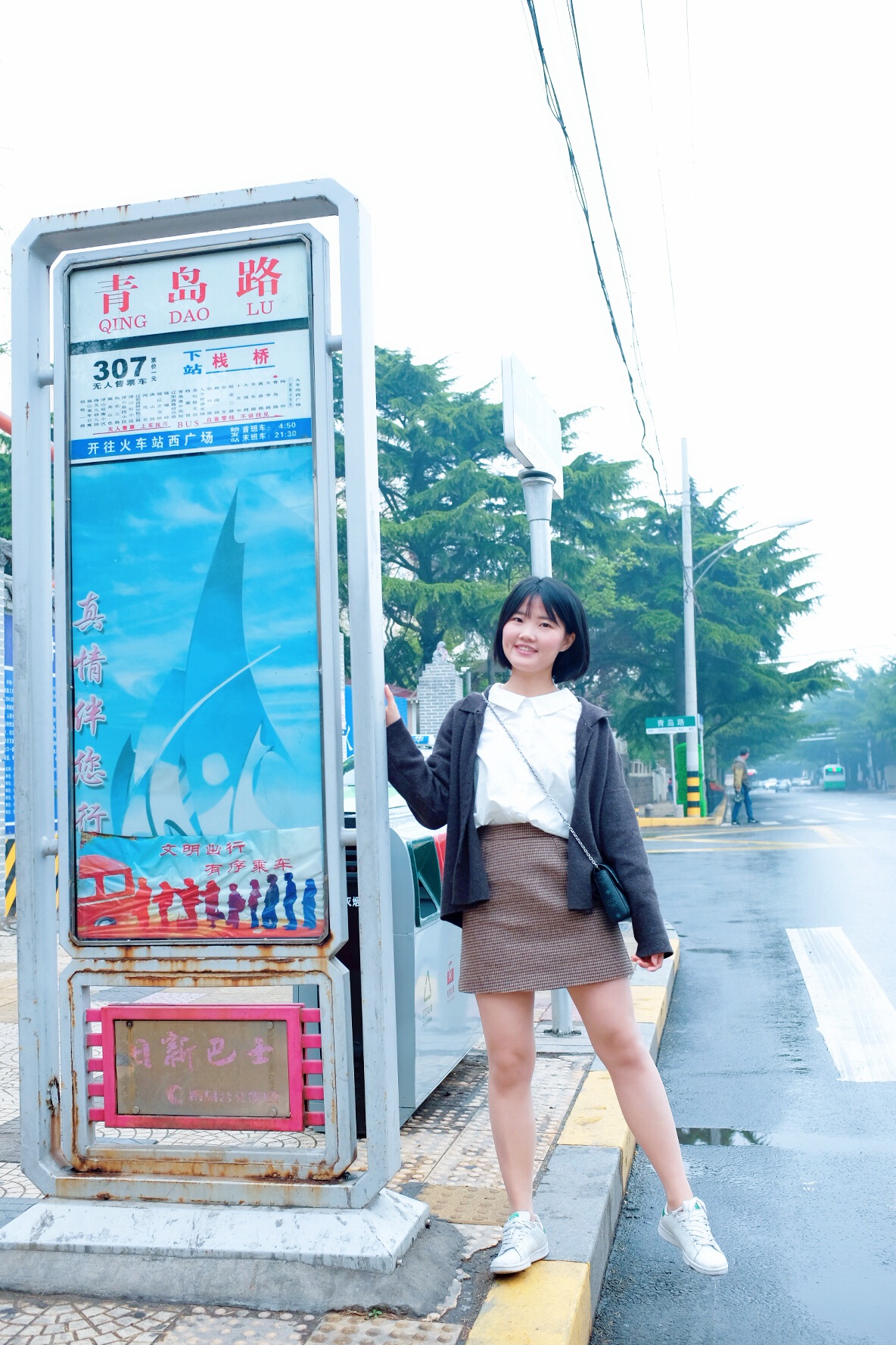 吃完中饭雨也停了,出了餐馆就是青岛路公交车站。感觉青岛的车站站牌长得还怪有意思的。