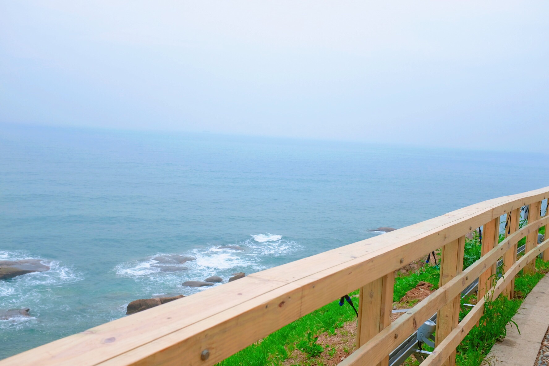 公园入口的地方长得像小区公园一般平平无奇,但是往上走一段就是沿海的木栈道,即便是这么差的能见度,我们都还是觉得很美。