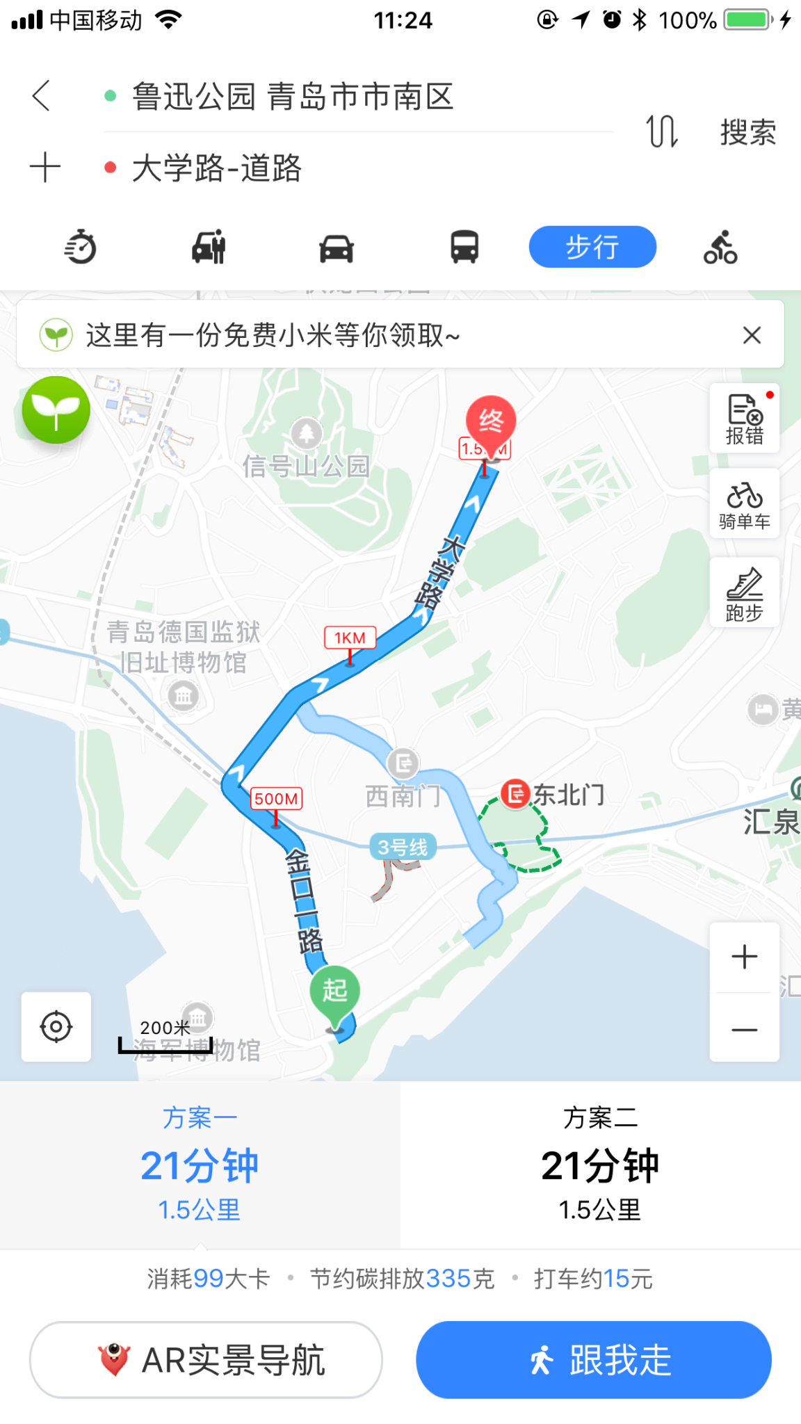 顺便附上鲁迅公园到大学路的路程,也是不行就能到达的哟