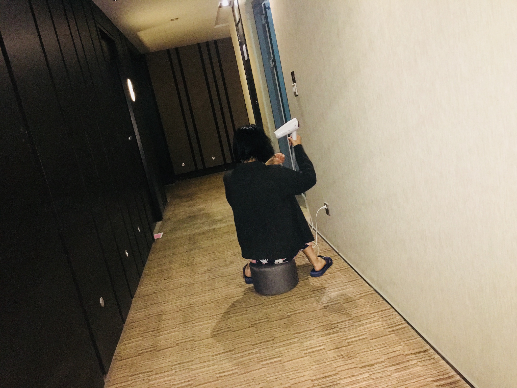 so,就有了↓↓↓这个端着小板凳在走廊吹头发的画面。