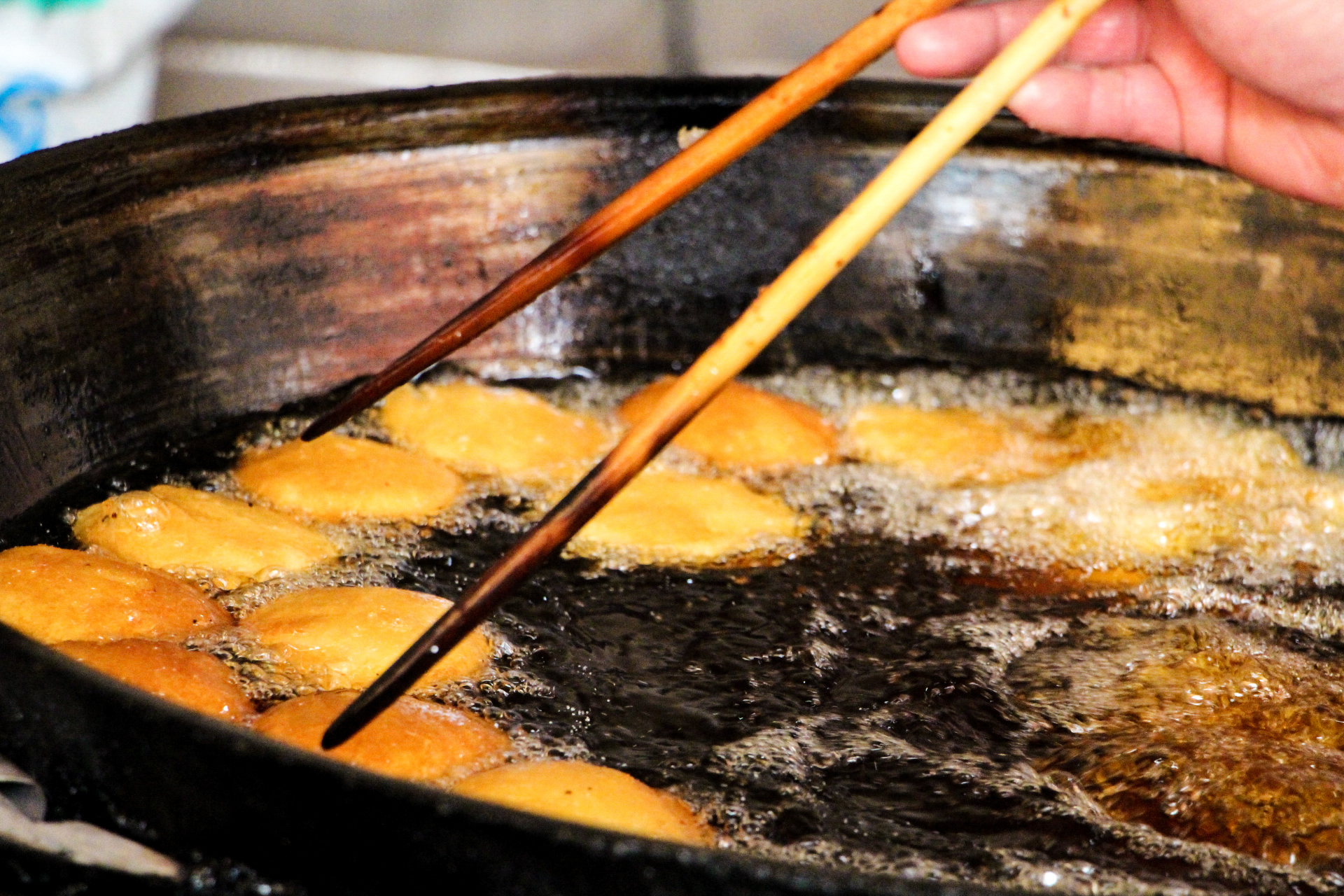 我很小就吃这家的炸糕了,对于那时的我来说团岛算是远地方,让我愿意勤快一下跑趟腿的原因就包括团岛早市里的炸糕。金黄酥脆,咬一口掉渣,对小孩子来说是最好的吃食。