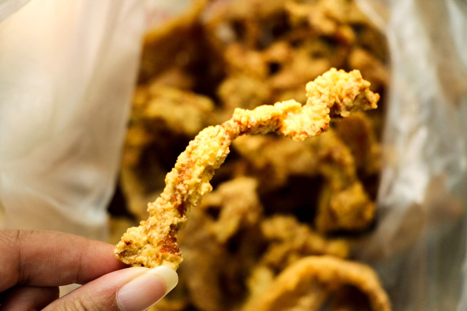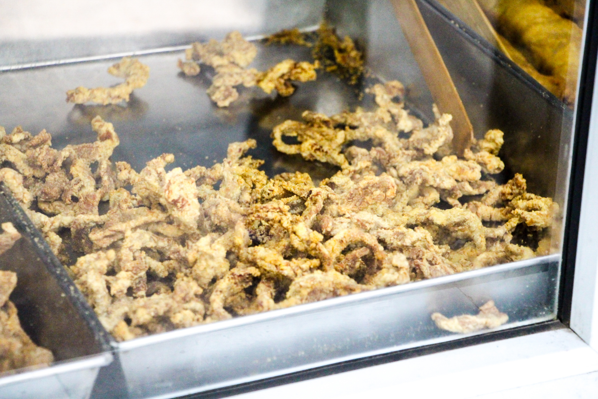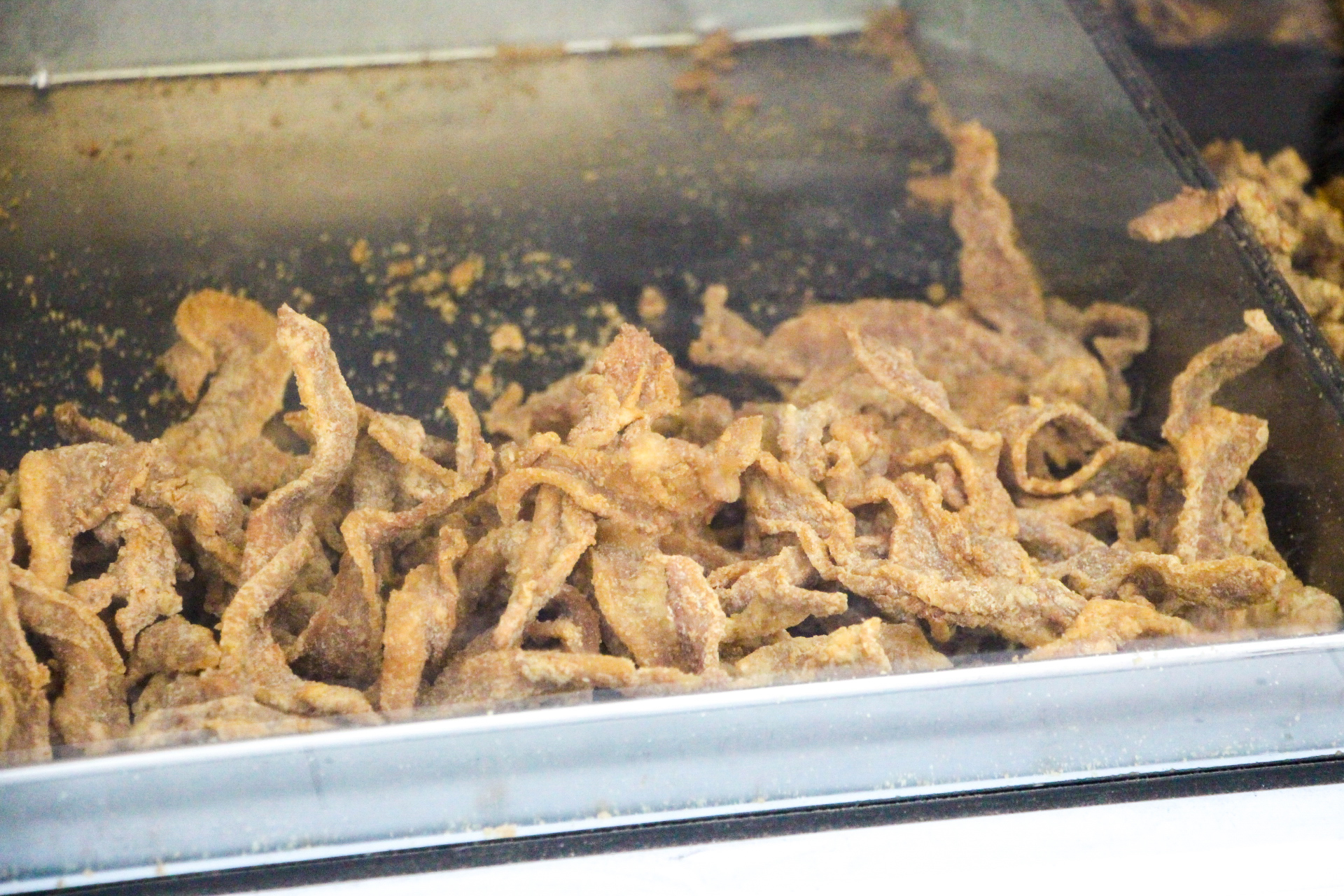 开始说炸肉,这是跟我年纪差不多大的炸肉店,主营炸货,最受欢迎的是炸五花,五花炸到酥脆,又不似青岛传统的脂渣,它留住的猪油更多些,软一点,一口满嘴生香。